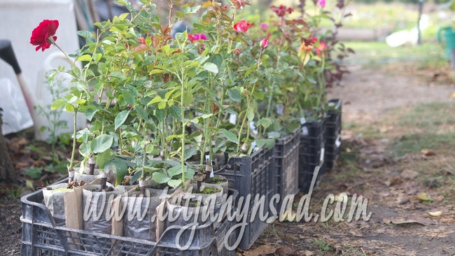 На даному фото показані ящики з саджанцями троянд, підготовленими до відправки. У ящику 12 саджанців.
