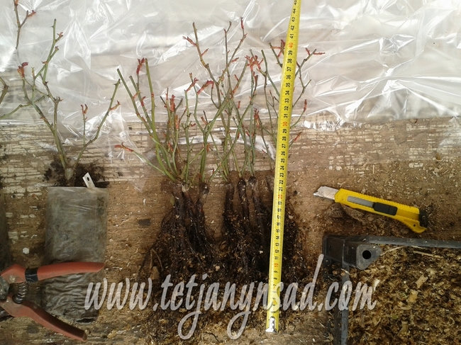 на фото 7 саджанців троянд, витягнутих з субстрату і підготовлених до відправки. Саджанці обрізаються по довжині коробки - до 40 см. Гнучкі гілки згинаються. Всі саджанці мають велику кількість бруньок, отже мають великий потенціал розвитку.