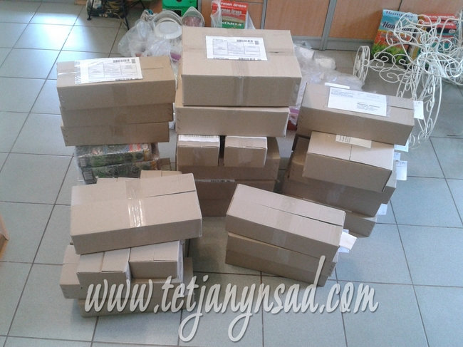 На фото середня денна норма відправляються посилок. На передньому плані ще не оформлені посилки, на задньому - повністю готові до відправки коробки, з наклеєною адресою і товарно-транспортною накладною. Середня добова кількість відправлених замовлень в сезон - 25-30 шт.