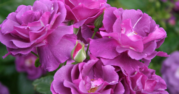 Пурпурно-фіолетові квіти при повному розпуску відкривають білосніжну серцевину і золотисті тичинки. Колір поступово світлішає до попелясто-бузкового. Якщо кущ росте на сонячному місці, то краї хвилястих пелюсток світлішають, надаючи квіткам особливу чарівність. У різний час доби колір цієї троянди сприймається по-різному. Наприклад, у вечірній час вона наче випромінює темно-синє сяйво. Квітки не дуже великі (5-6 см) напівмахрові (до 25 пелюсток), зібрані в суцвіття з 5-9 шт. чарівного кольору з густим, п'янким ароматом. Життя кожної квітки триває недовго, але завдяки великій кількості суцвіть і рясному квітуванню до перших морозів, прямостоячі кущі (до 130 см) постійно усипані квітками на тлі великого листя. Сорт дуже надійний і невибагливий, стійкий до хвороб, зимостійкий.